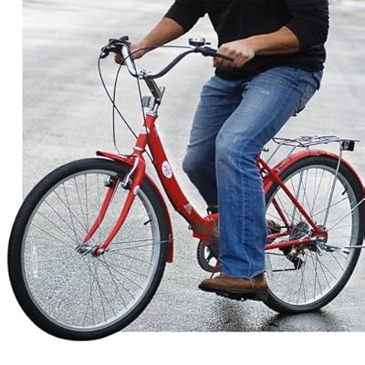 The fold-down take anywhere bike from i-Ped is perfect for people who live in apartments, condos, dorm rooms and other places where space is at a premium! This ingenious bike has a quality steel frame that folds down to 35 x 11 x 31 so you can easily transport it in your vehicle's trunk. You can store it in a closet too! Features 6-speed Shimano gear component, Vancom 26 tires, aluminum wheels, chrome spokes, hand controlled front and rear brakes, hand bell ringer, steel fenders and rear luggage rack, safety reflectors and kick stand.